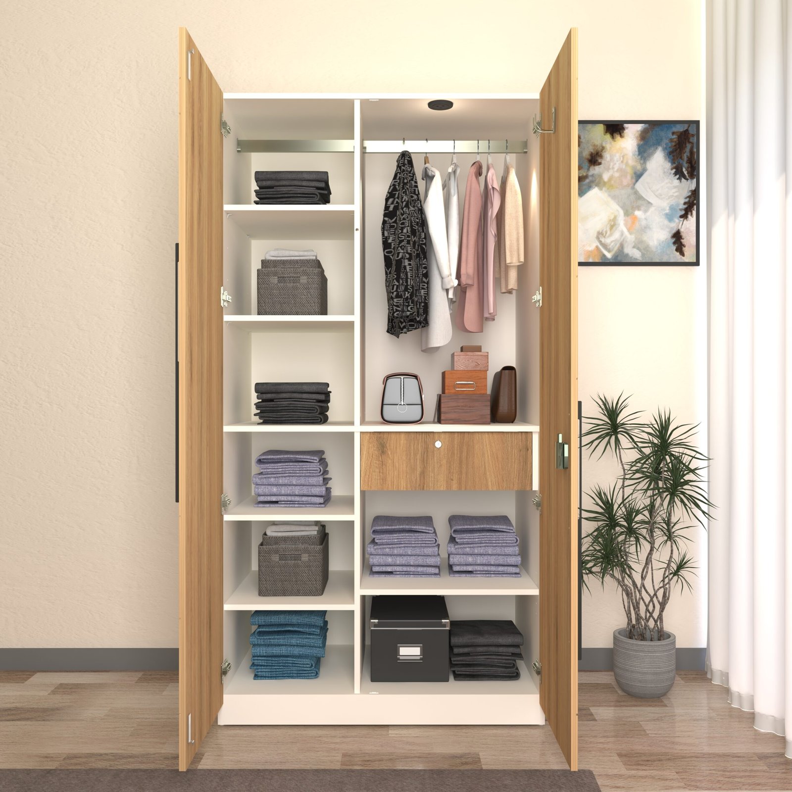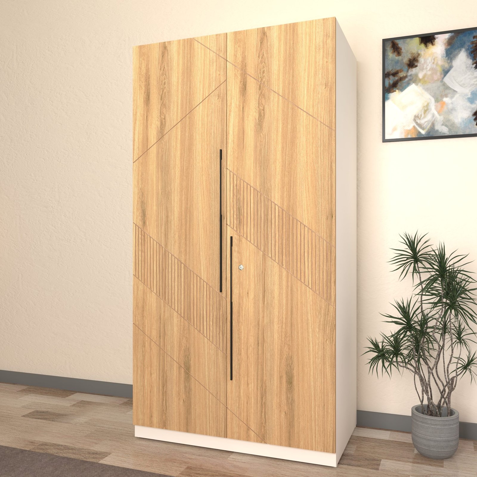 Transform your bedroom into a beautifully organised and modern space with the Amoko Premium 2-Door Wardrobe, crafted for homeowners who seek elegance, durability, and intelligent storage in one premium design. Built in a refined dual-tone engineered wood finish, this wardrobe features designer MDF shutters with diagonal groove patterns, premium slow-motion hinges, and high-grade hardware for long-lasting performance. The wooden almirah is also equipped with a soft-glow sensor-based LED light that automatically illuminates when you reach for clothes on the hanger, ensuring clear visibility even in dim light. The light operates using AAA batteries ensuring easy and convenient replacement without any wiring hassle.