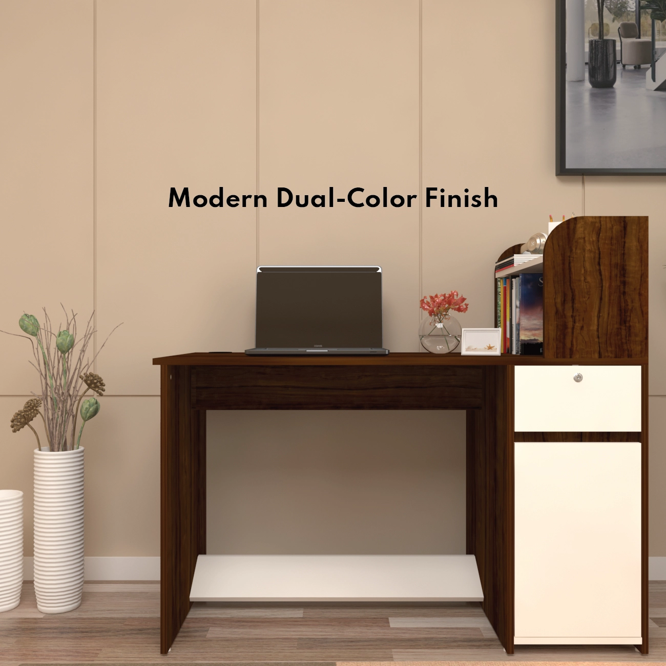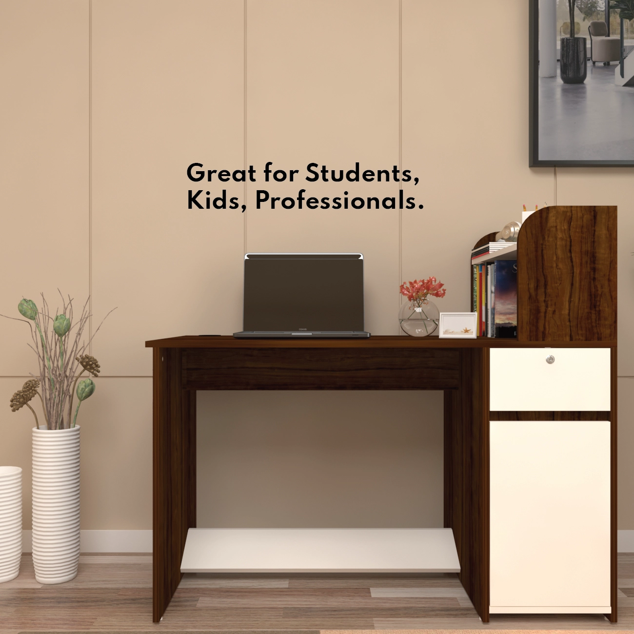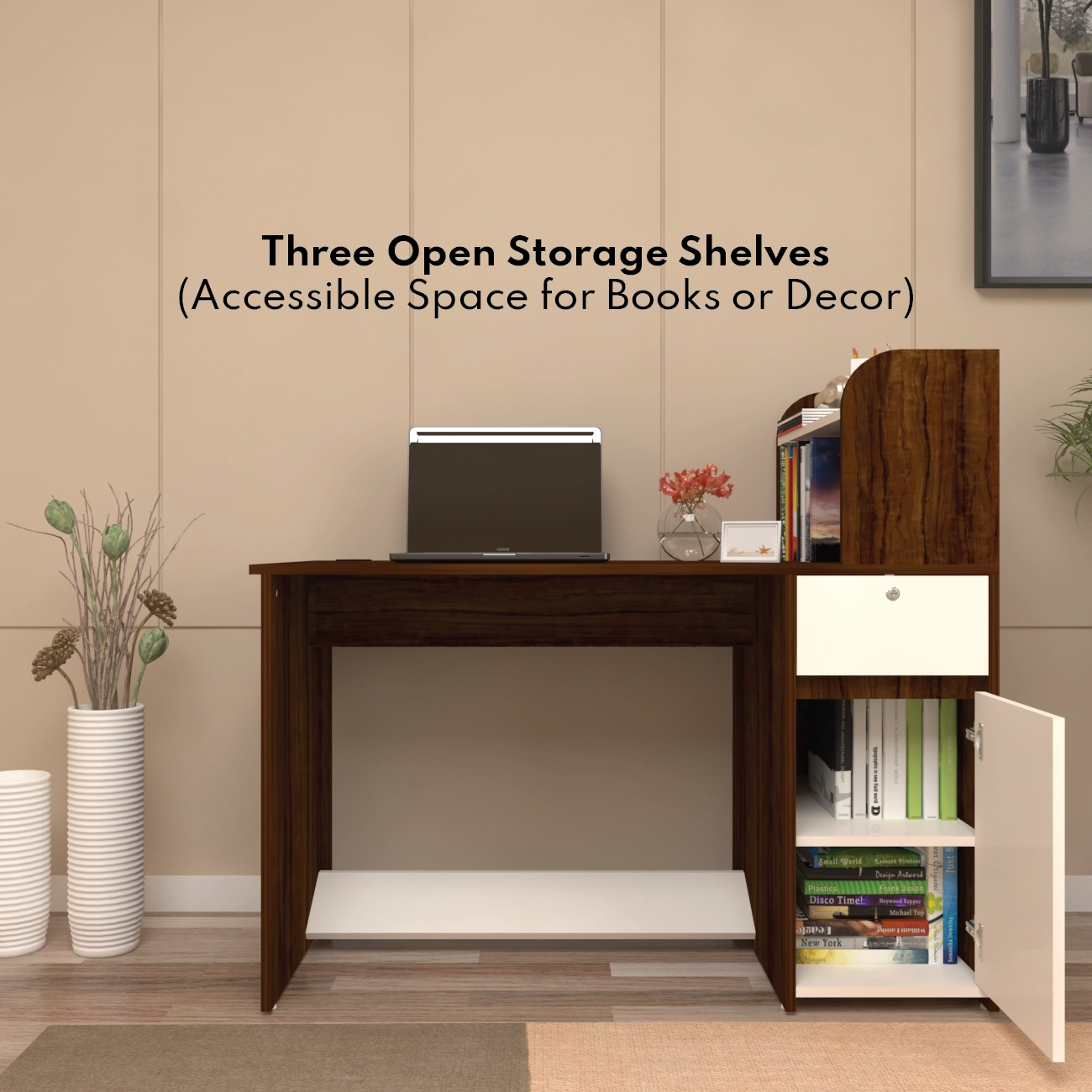 The Berio Study Table is a versatile and ergonomic desk designed to enhance productivity and comfort. With dimensions of 127.5 cm (50.1 in) by 60 cm (23.6 in), it offers a spacious workspace, perfect for use as a computer or office desk. Crafted from premium engineered wood, the table boasts a sturdy, durable build with a modern dual-color tone that complements any room decor. Ideal for students, kids, or professionals, this study table includes three open shelves for convenient storage of books, accessories, or decor.