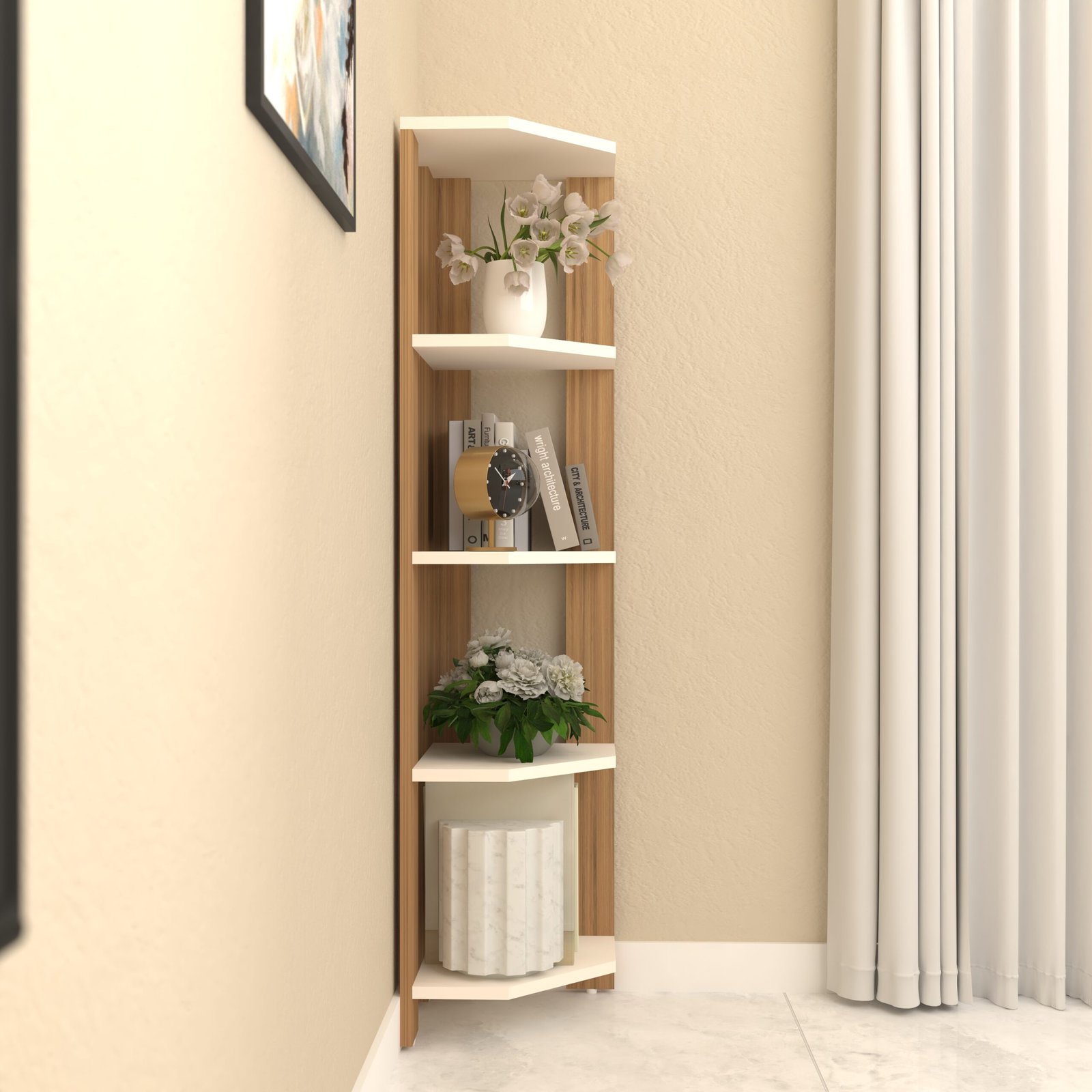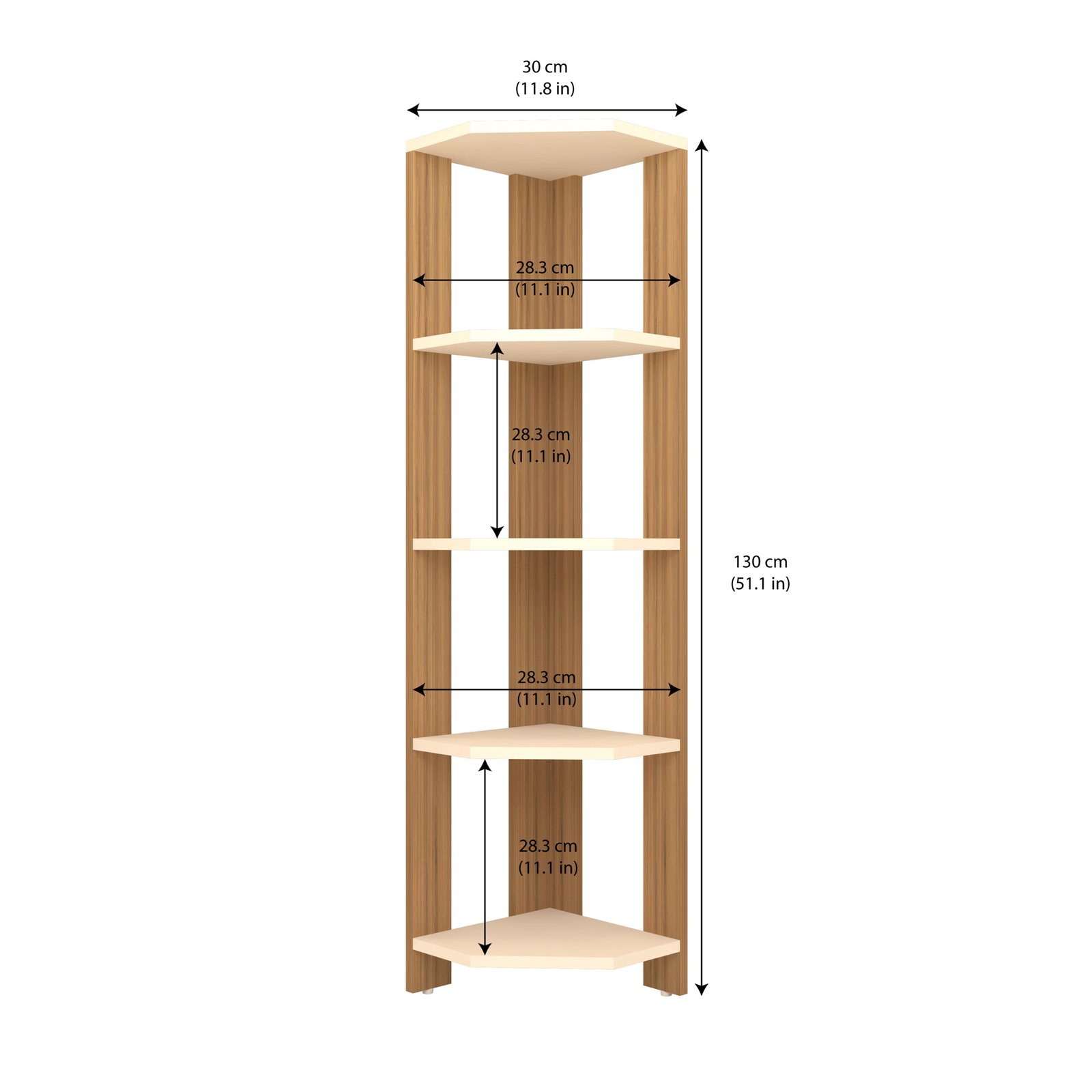 With an overall height of 130 cm (51.1 in) and a compact width of 30 cm (11.8 in), the unit features four evenly spaced corner shelves. This allows easy placement of books, décor pieces, planters, photo frames, and collectibles while fitting neatly into room corners.