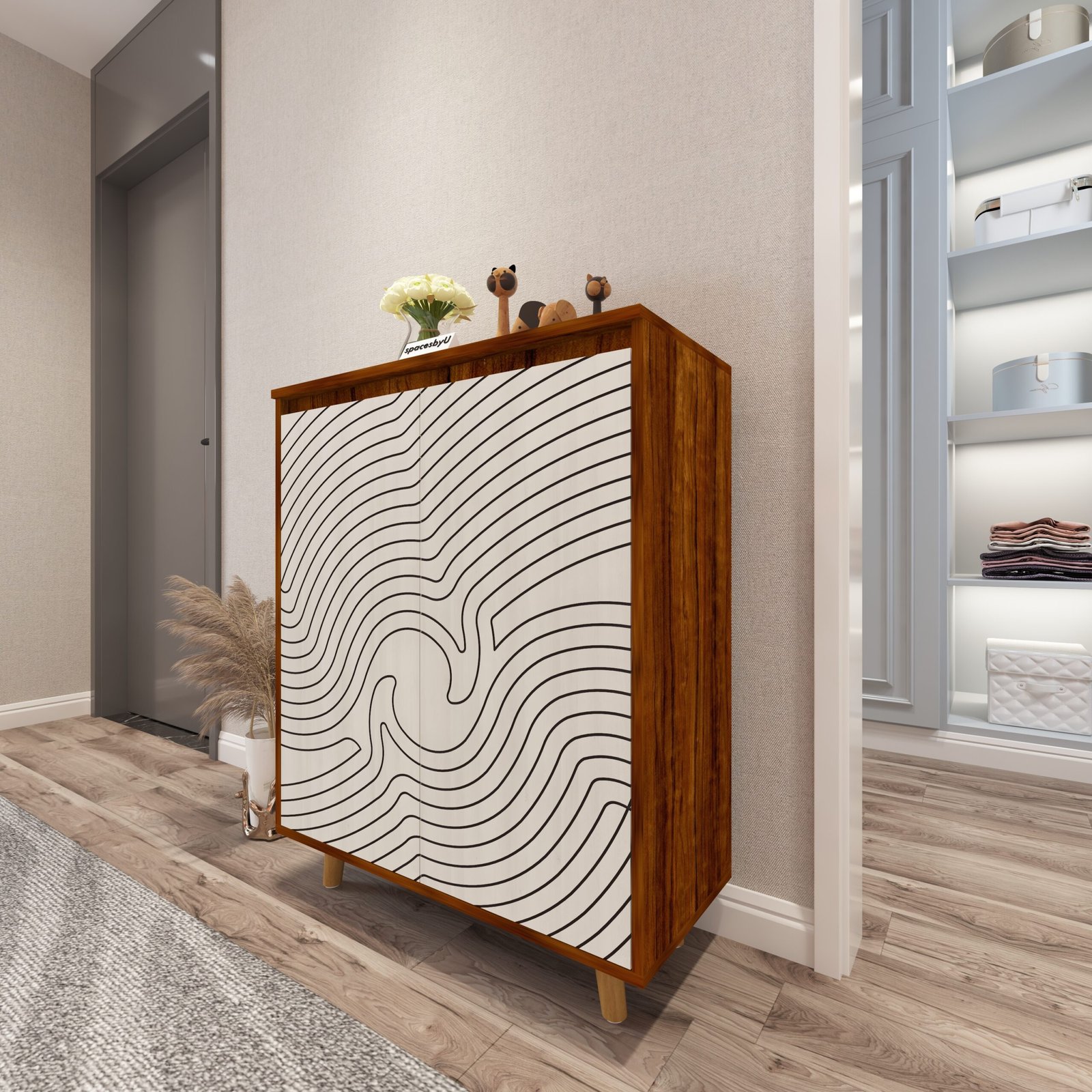 The uniquely curved groove pattern on the shutters creates a fluid, eye-catching design that elevates the overall look, making it more than just a storage unit—it’s a statement piece. Inside, the cabinet features five height-adjustable shelves that can comfortably accommodate up to 20 pairs of footwear, helping you maintain a neat and clutter-free space. The top surface adds extra functionality, perfect for displaying décor, storing keys, or placing daily essentials.