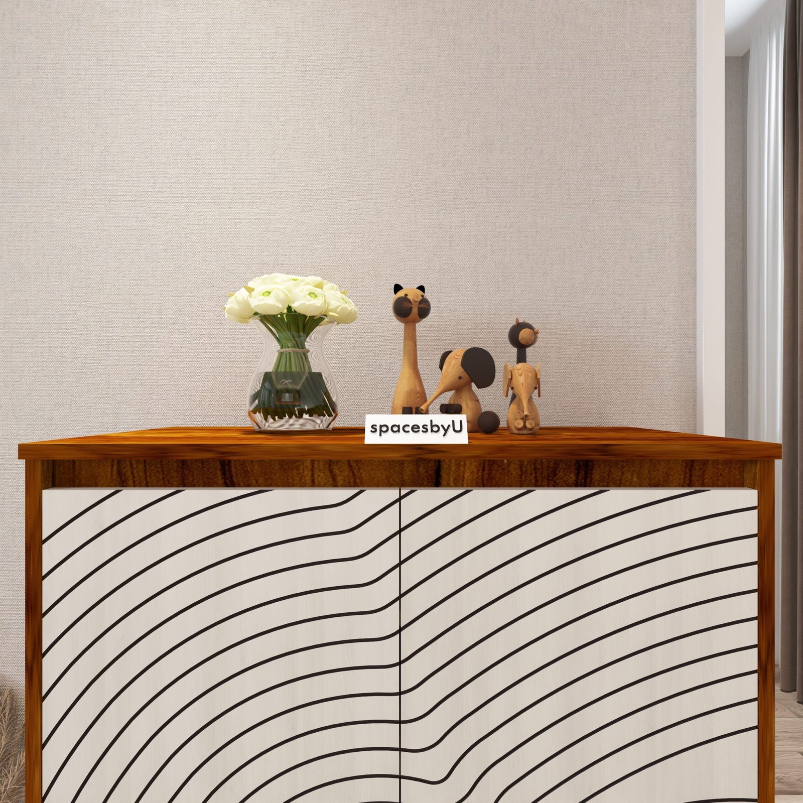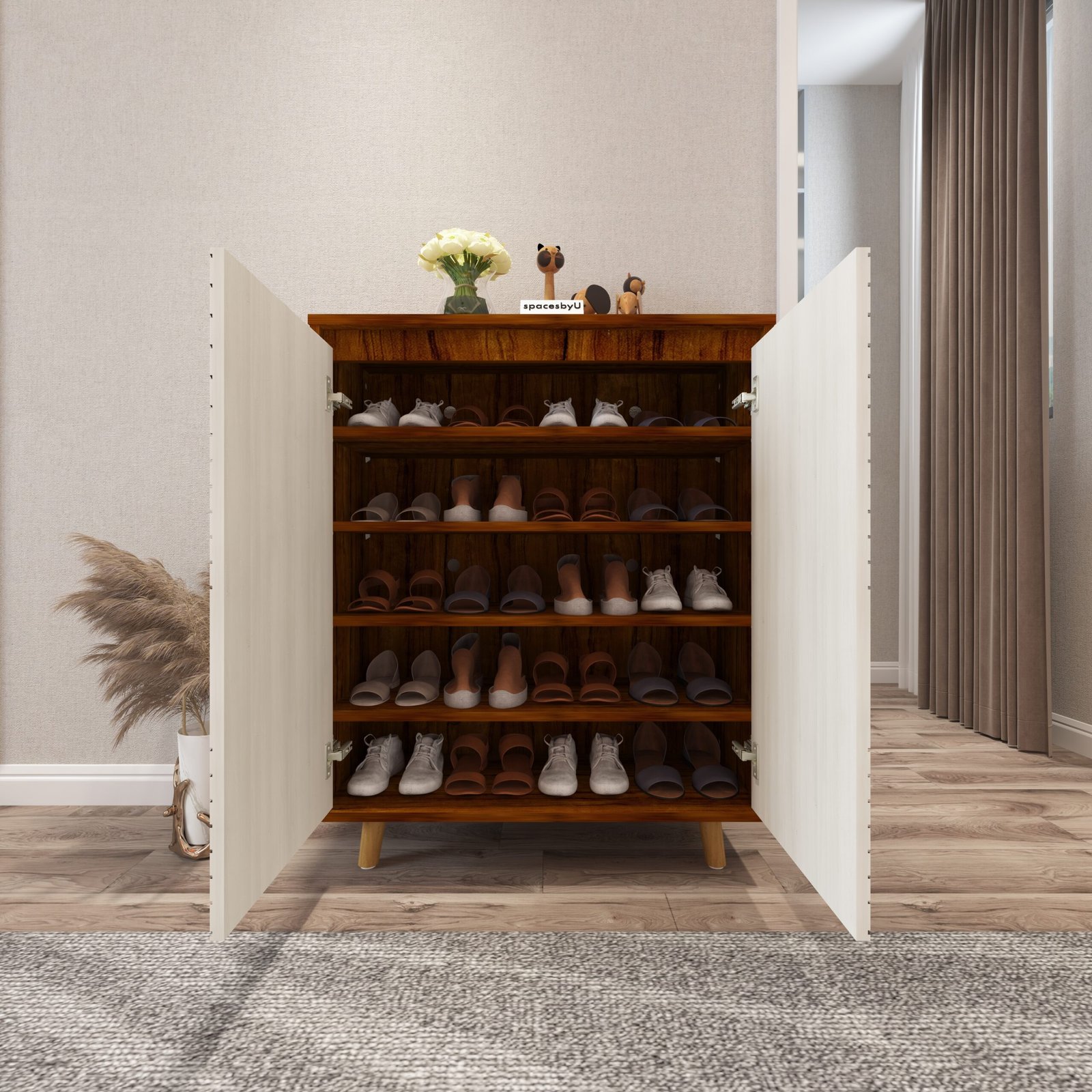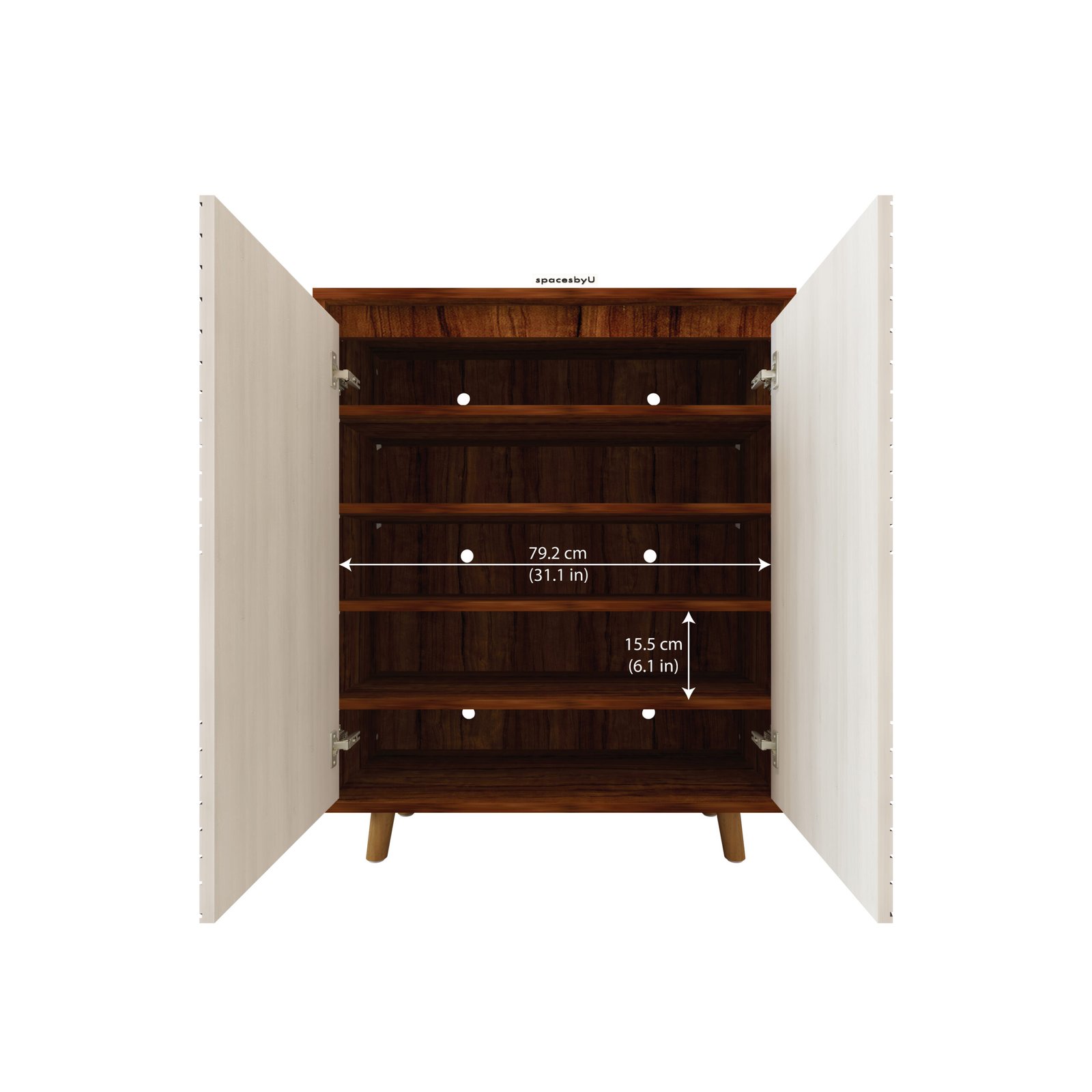 Enhance your home with the DROOVE Designer Shoe Rack, a refined blend of modern aesthetics and practical storage. Expertly crafted from premium engineered wood, this stylish cabinet features a rich dual-tone finish in Brazilian Walnut and Frosty White, adding warmth and sophistication to any contemporary interior. With dimensions of 100.9 cm (39.7 in) height, 82.6 cm (32.5 in) width, and 36 cm (14 in) depth, it offers a compact yet spacious solution for everyday organization.