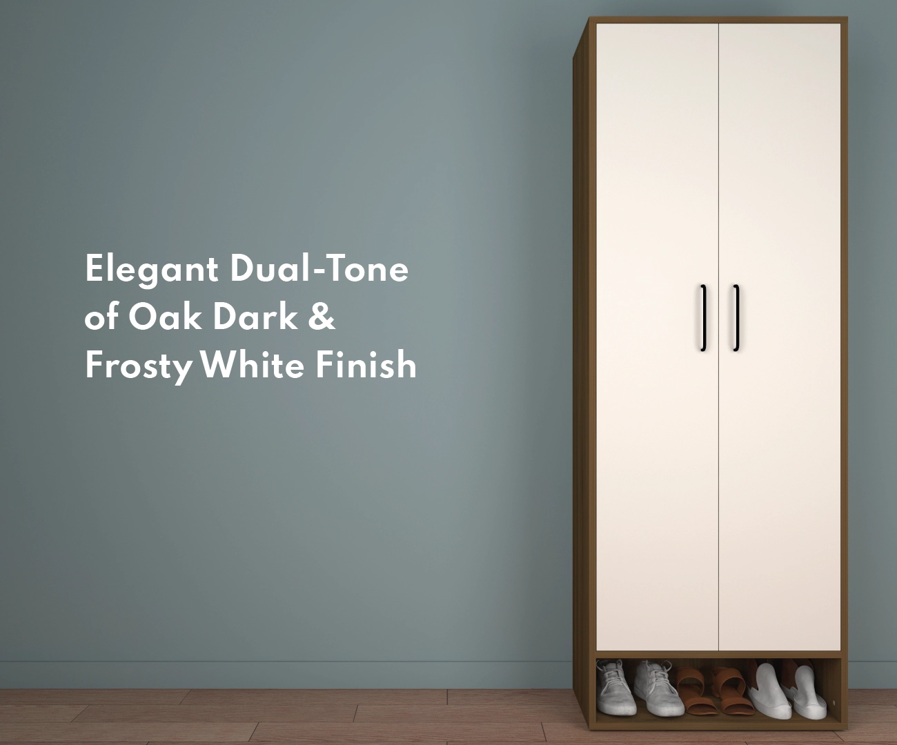 Dual-Tone Finish: Elegant combination of Oak Dark and Frosty White for a modern, stylish look.