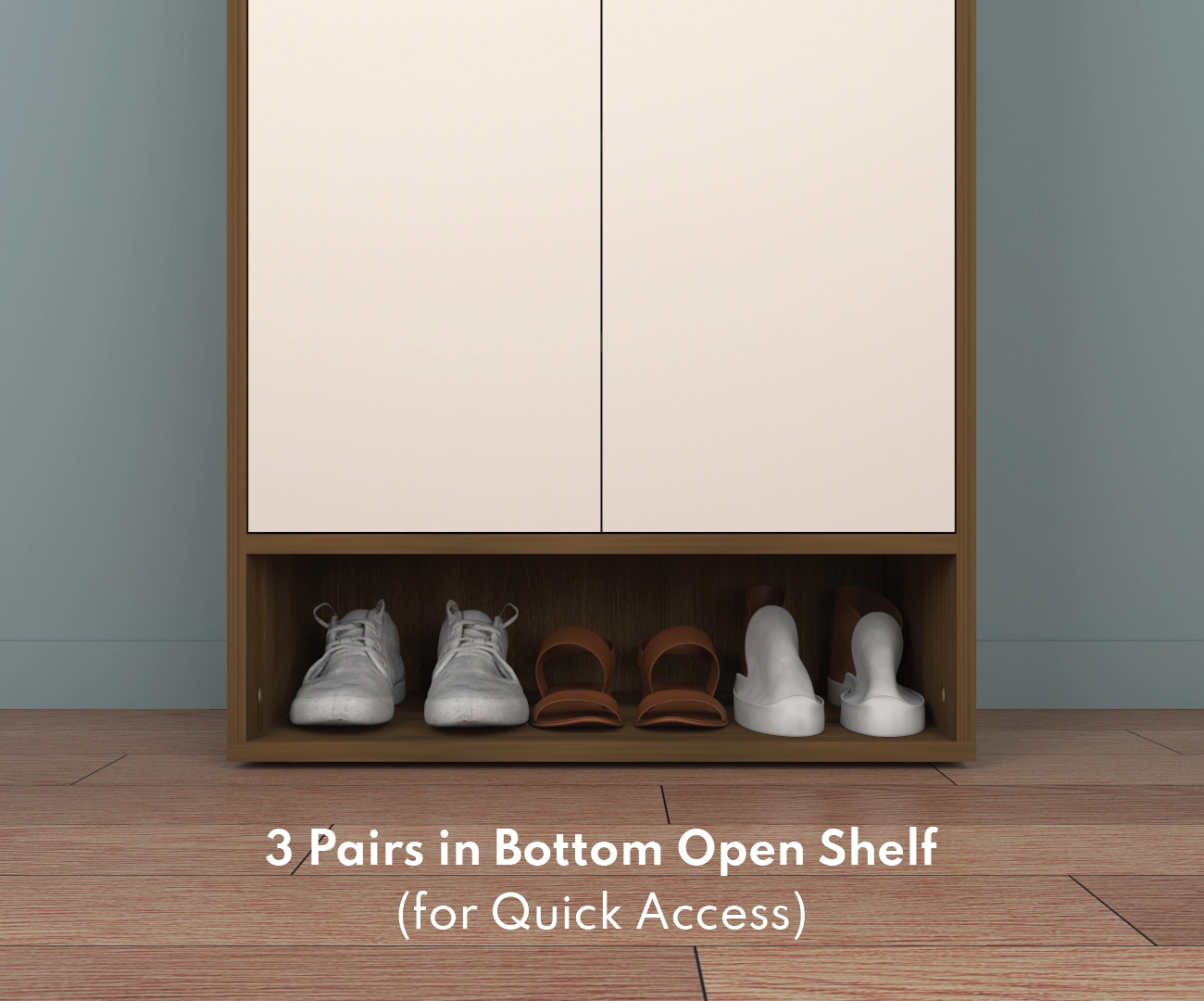 Accessible Open Shelf: Bottom open shelf for 3 pairs — ideal for grab-and-go convenience.