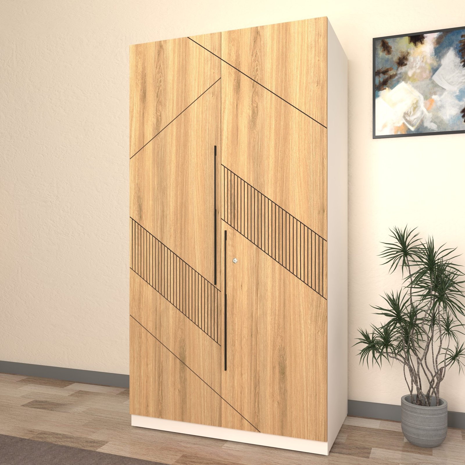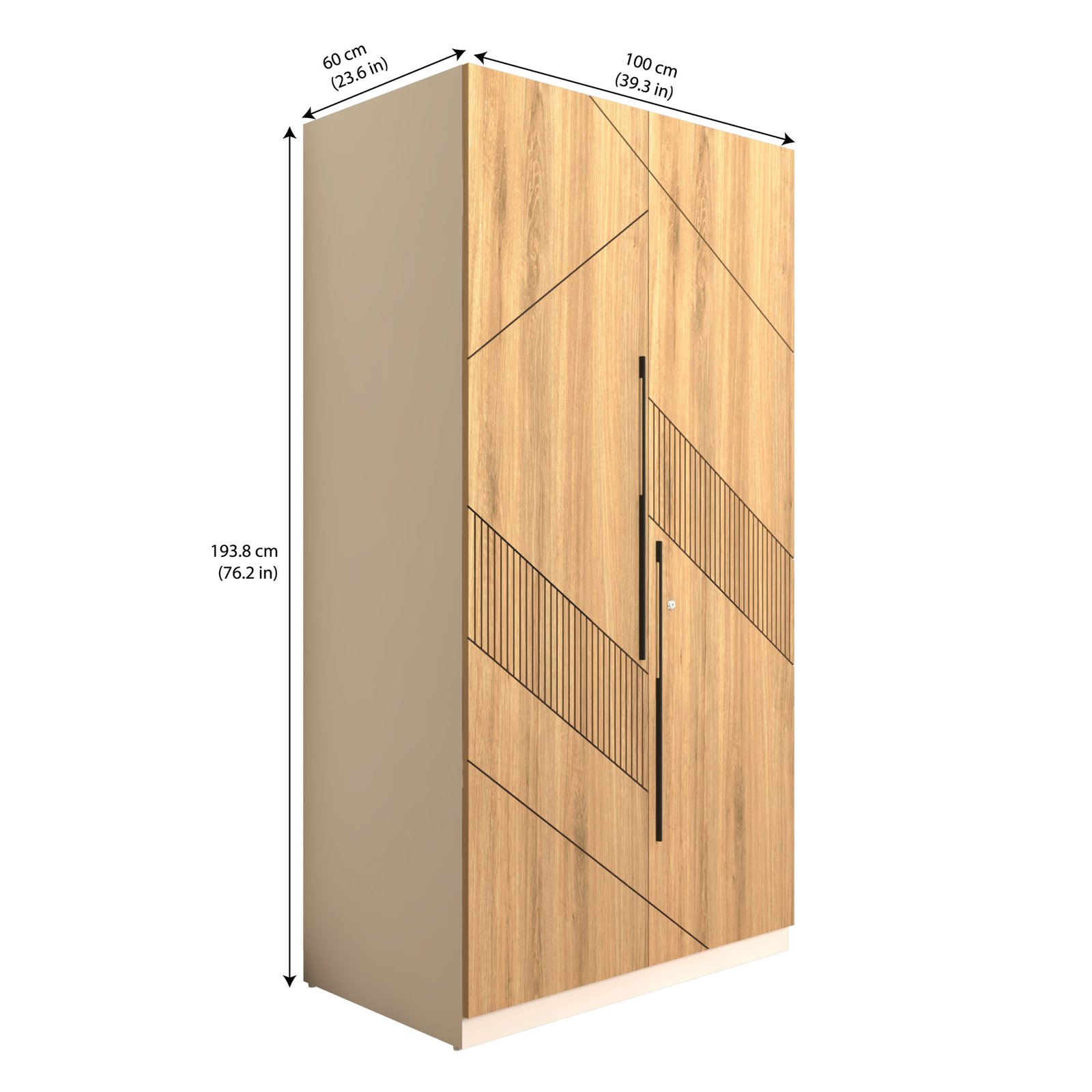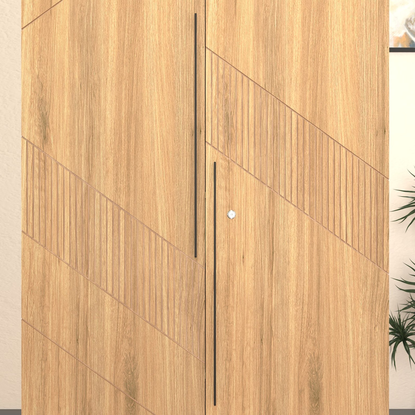 For added convenience, the Keris wardrobe includes an automatic LED sensor light, ensuring perfect visibility every time you open the doors. Premium soft-close hinges, long metal handles, and high-grade hardware enhance its durability and smooth functionality. Simple, elegant, and efficient—the Keris Wardrobe is the perfect storage choice for compact and modern bedrooms. With 17mm thick panels, 24-inch designer profile handles, a sturdy 7-lever lock, dual door stoppers and an accessory peg for belts or scarves.