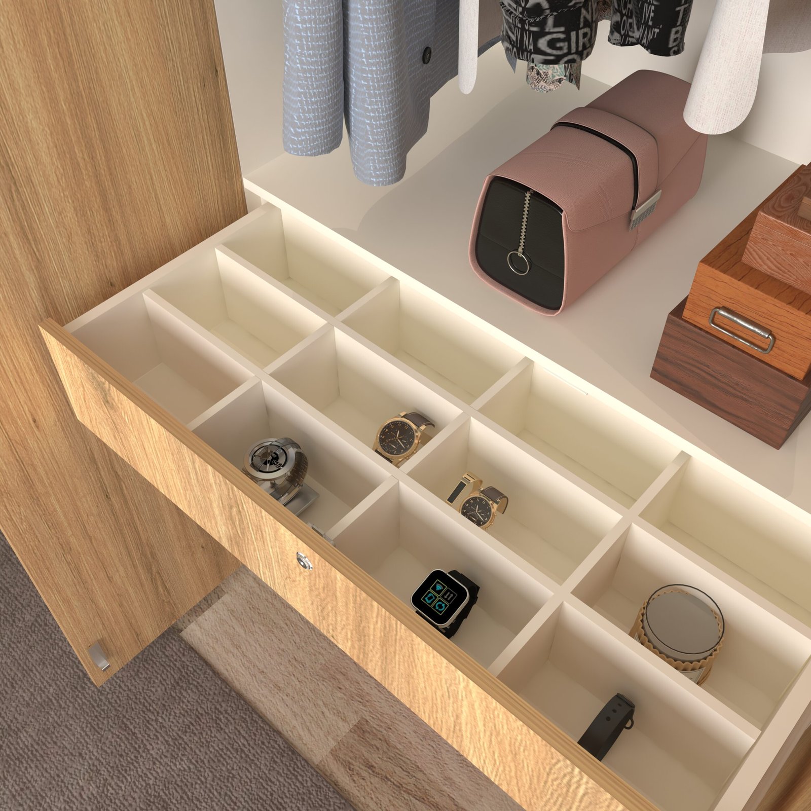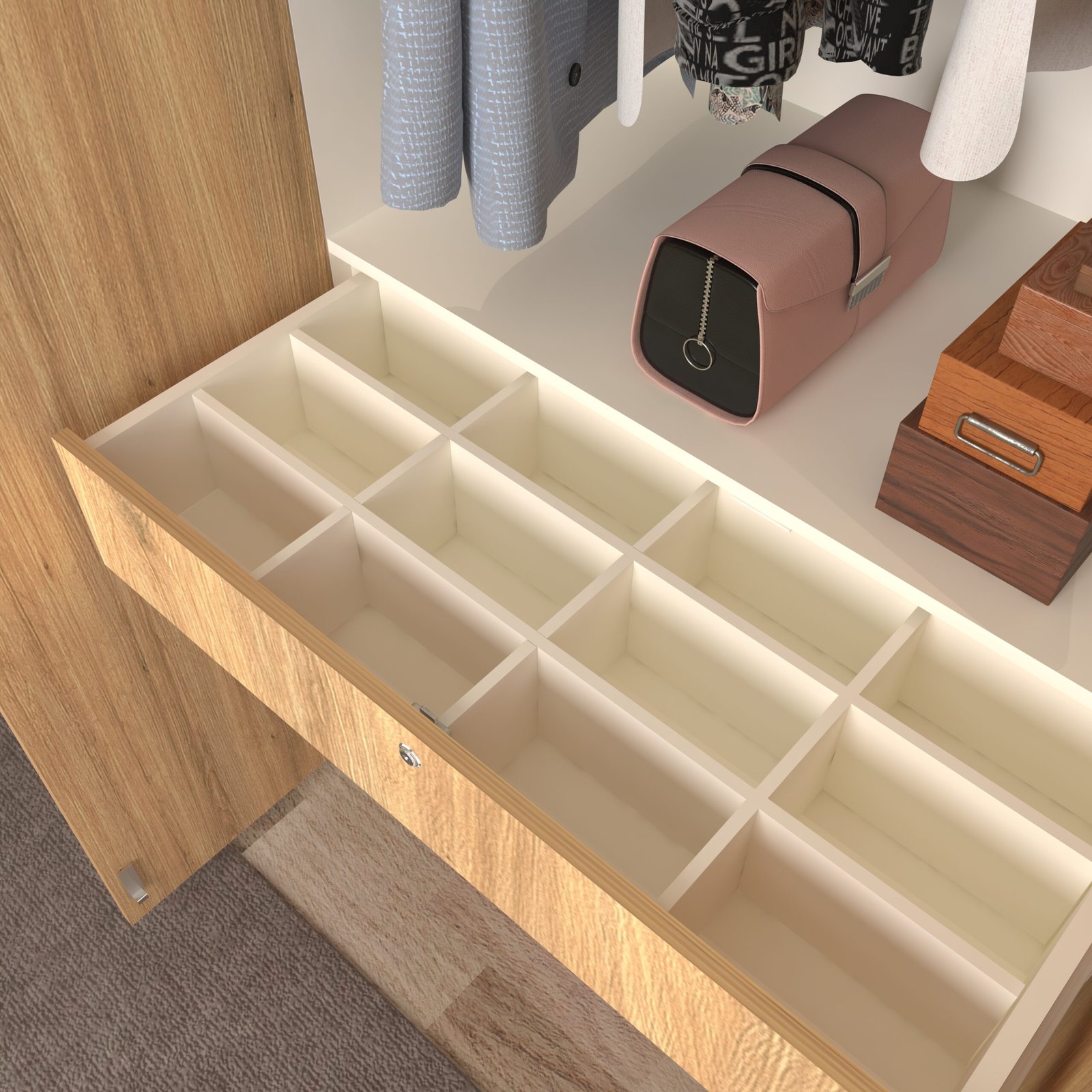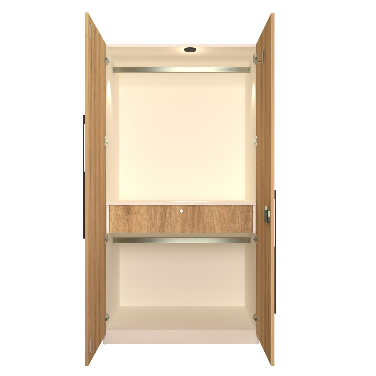 For added convenience, the Keris wardrobe includes an automatic LED sensor light, ensuring perfect visibility every time you open the doors. Premium soft-close hinges, long metal handles, and high-grade hardware enhance its durability and smooth functionality. Simple, elegant, and efficient—the Keris Wardrobe is the perfect storage choice for compact and modern bedrooms. With 17mm thick panels, 24-inch designer profile handles, a sturdy 7-lever lock, dual door stoppers and an accessory peg for belts or scarves.