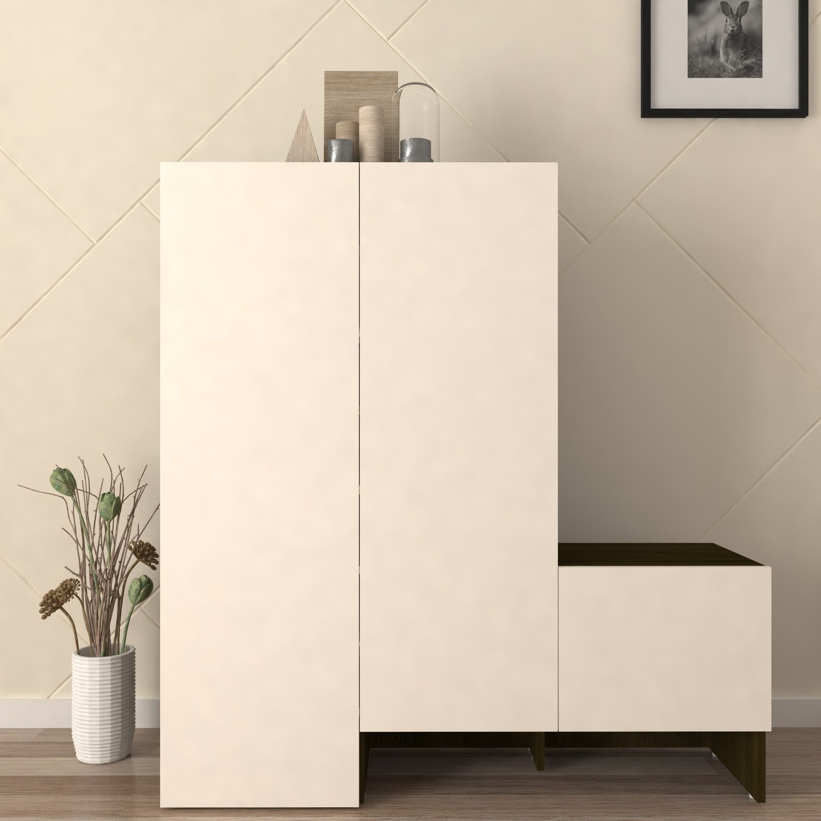 The Kesto shoe cabinet offers massive storage for up to 38 pairs of shoes, neatly arranged across multiple spacious shelves. The smart step layout includes a tall full-height cabinet, a mid-level storage section comfortable seating bench, allowing you to sit conveniently while wearing or removing your footwear. This makes it perfect for entryways, hallways, and living spaces where comfort and organization matter.