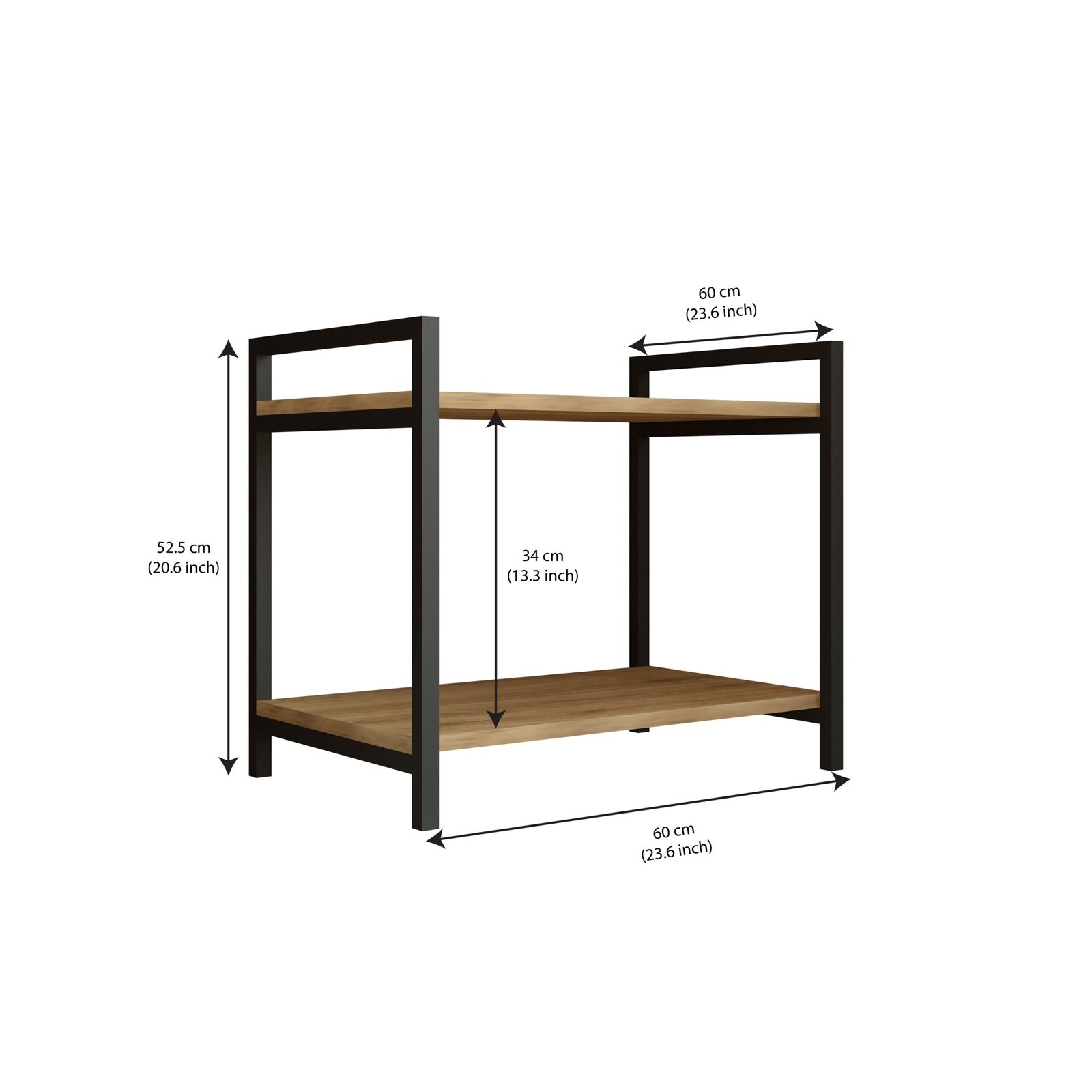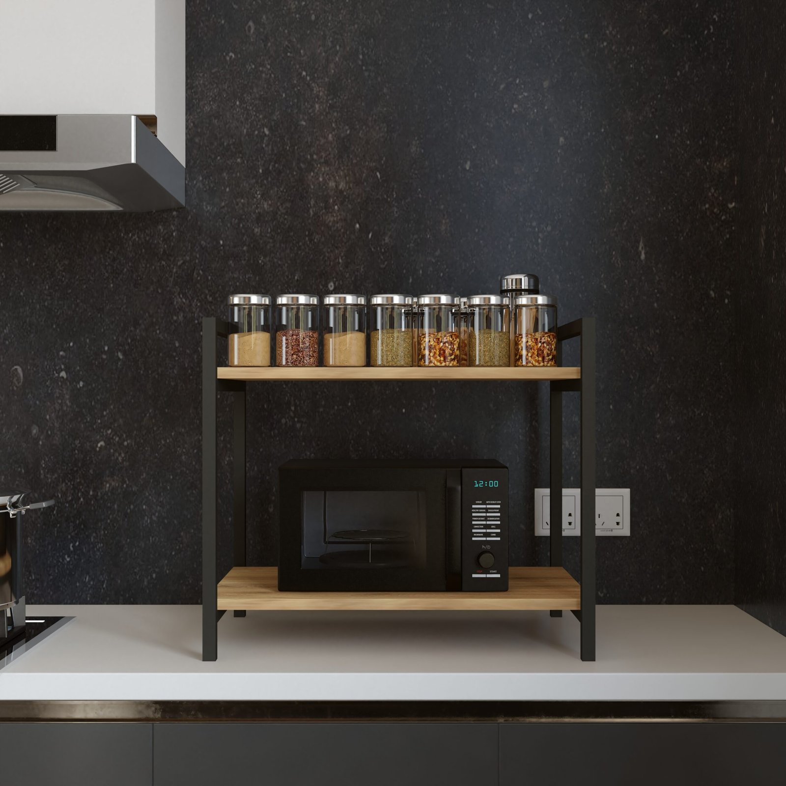 With an overall size of 60 cm (W) × 52.5 cm (H) and a generous 34 cm vertical clearance between shelves, this organizer is ideal for placing a microwave, OTG, or other kitchen appliances on the lower shelf, while the top shelf conveniently stores spice jars, containers, condiments, or daily-use kitchen essentials. Its open, freestanding design ensures easy access, better ventilation, and efficient use of countertop space, making it suitable for both compact and spacious kitchens.