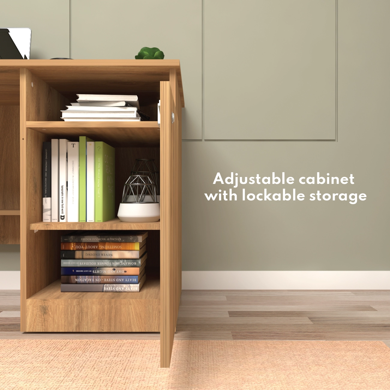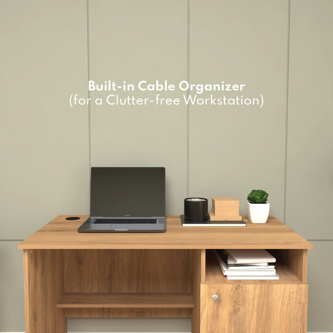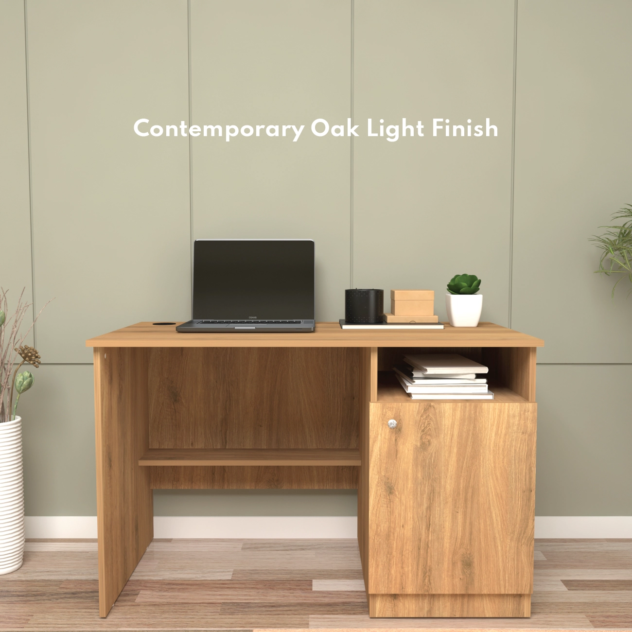 Design: Its contemporary oak light hue complements various interiors, adding warmth and acting as a study/workspace focal point.