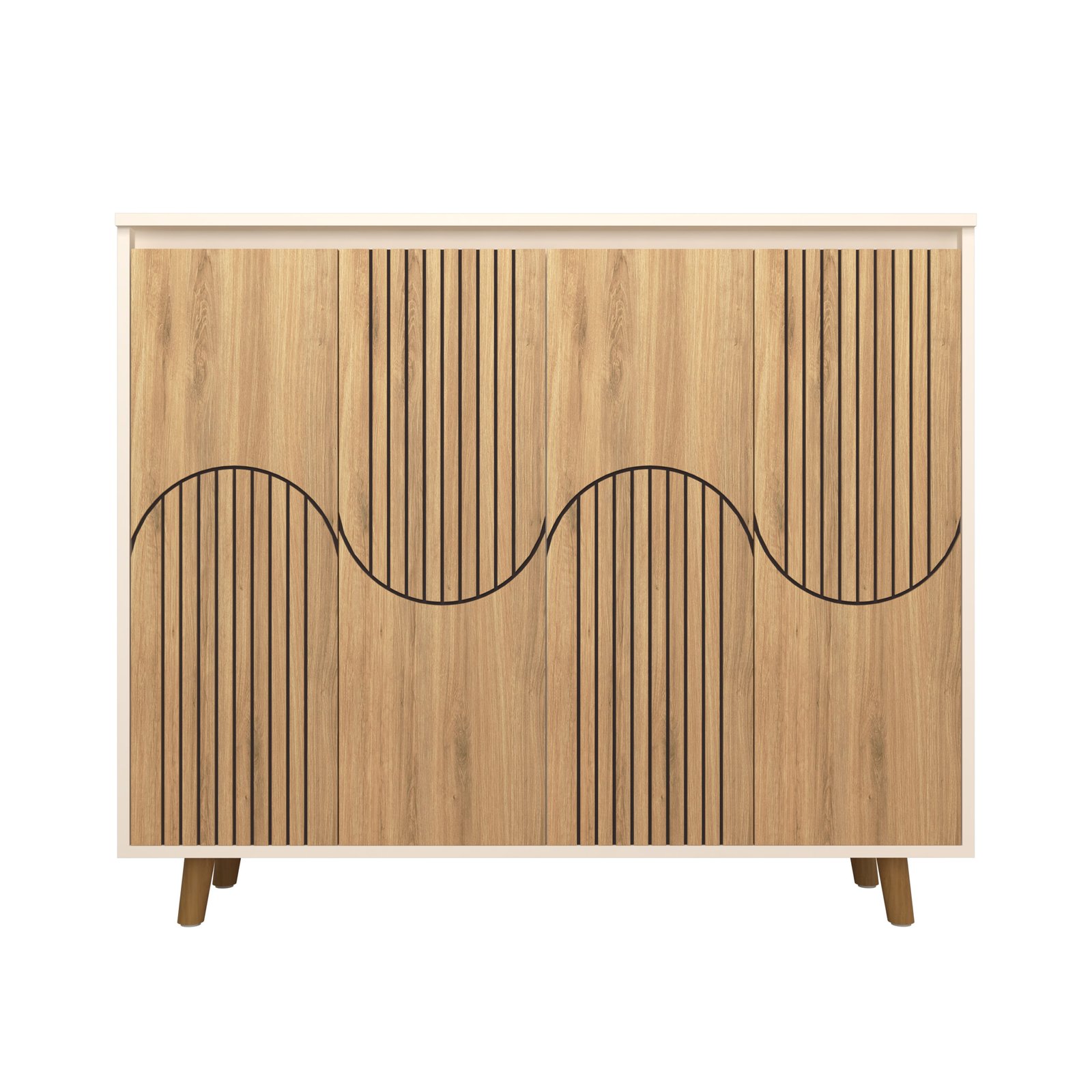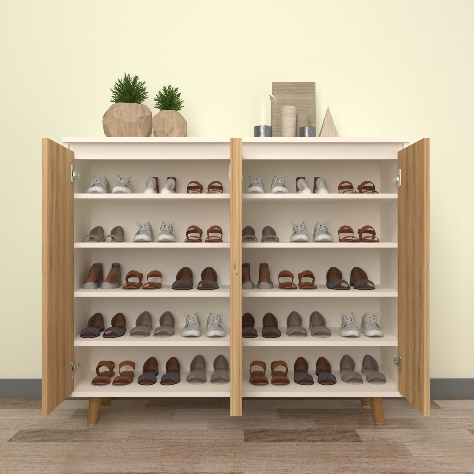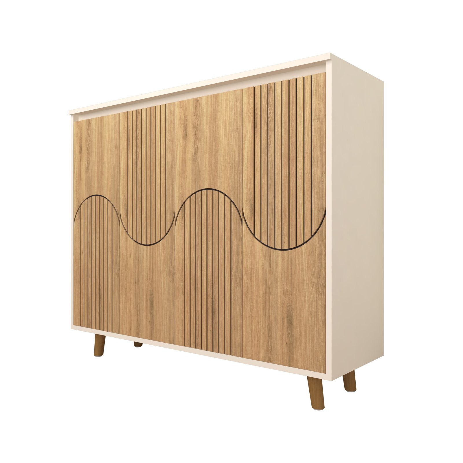 The highlight of the design lies in its premium designer shutter doors, detailed with vertical grooves and a flowing wave-pattern accent that adds depth, texture, and contemporary character. Behind the shutters, thoughtfully spaced internal shelves provide organised storage for up to 30 pairs of shoes, keeping them protected from dust and visual clutter. Finished with sturdy raised legs for enhanced stability and easy floor cleaning, the Octaro shoe rack is a perfect balance of style, structure, and everyday practicality.