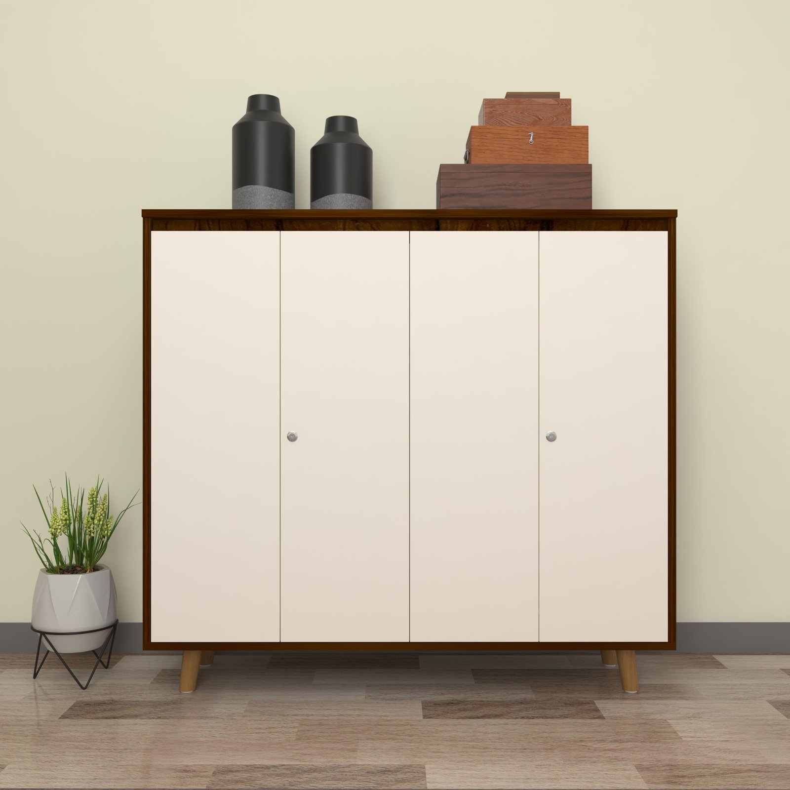 The Octaro Shoe Rack is the perfect blend of style, functionality, and modern design, ideal for organizing your footwear collection. Crafted from premium engineered wood, this shoe cabinet features a dual-tone finish of frosty white and brazilian walnut, adding elegance to your living space. Measuring 120 cm in width, 110 cm in height, and 37.5 cm in depth, it offers a compact yet spacious shoe storage solution.