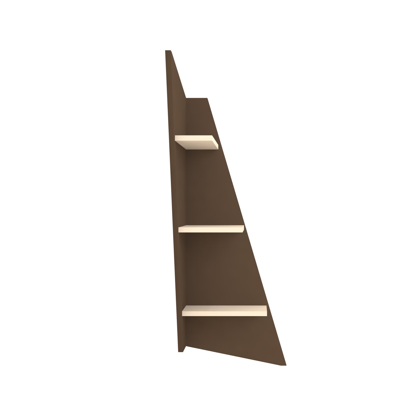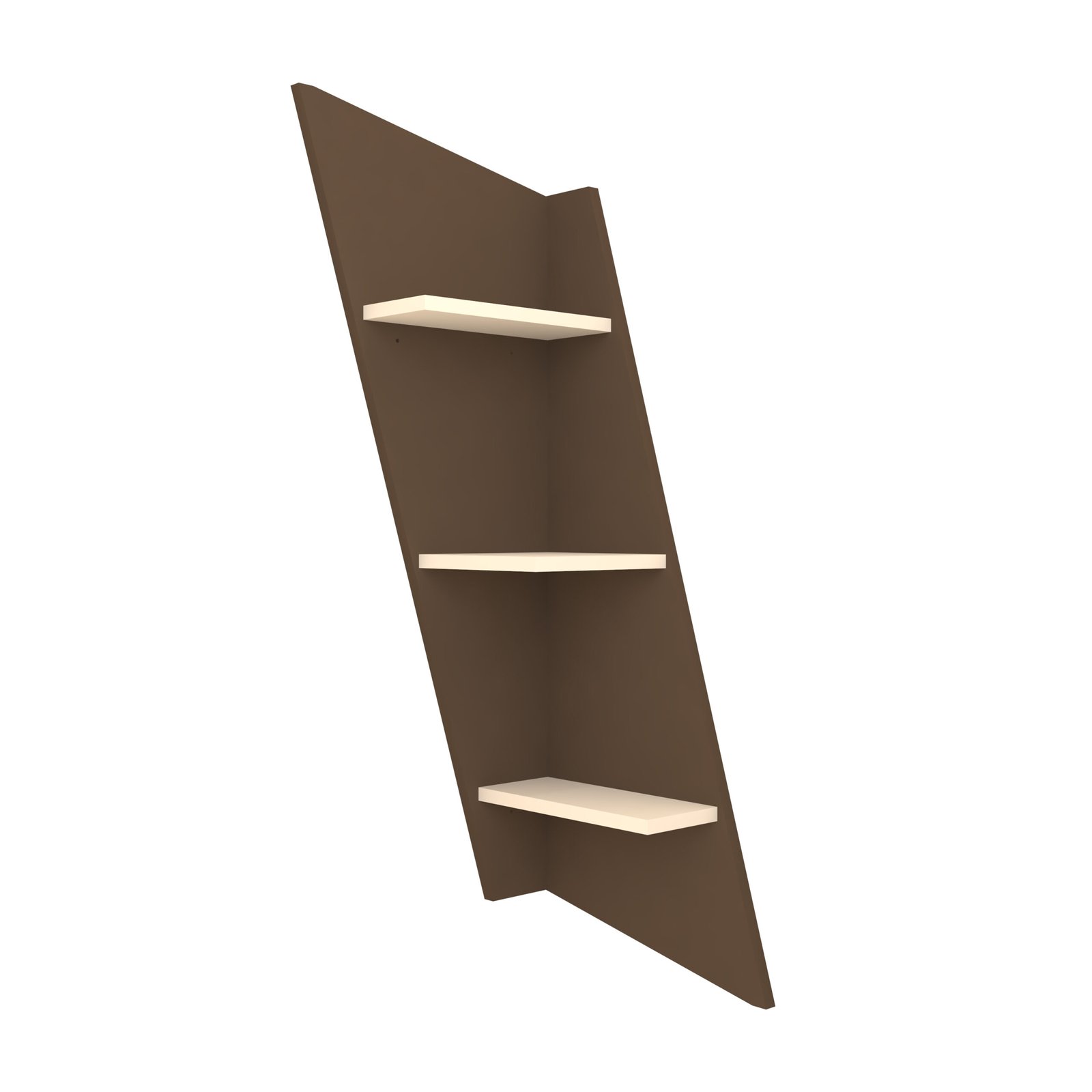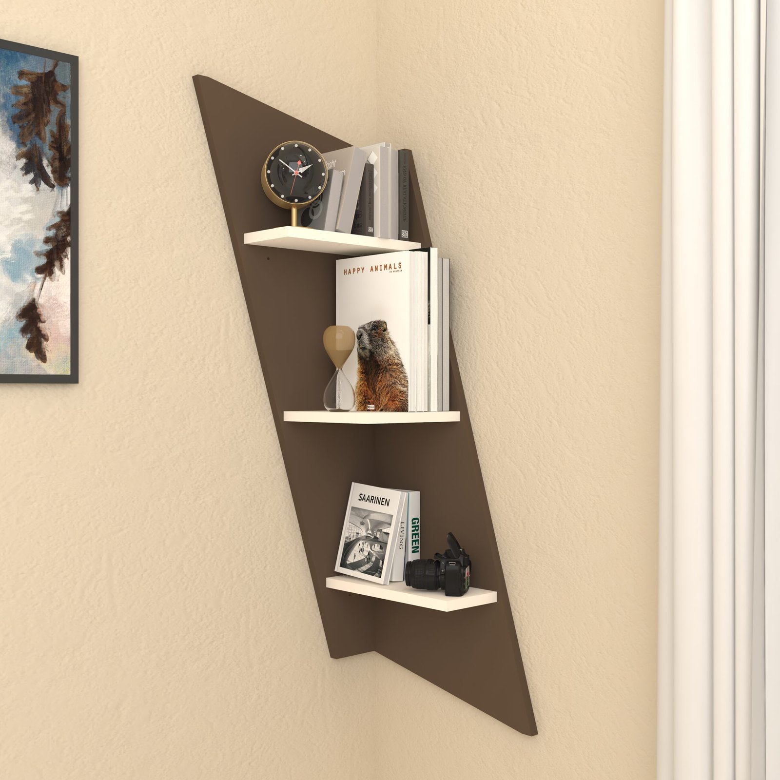 Add a bold designer touch to your interiors with the modern Slanix Wall Shelf in an elegant mocha brown and frosty white combination. Featuring a unique slanted back panel with tiered floating shelves, this wall mounted shelf blends functionality with contemporary wall decor styling.