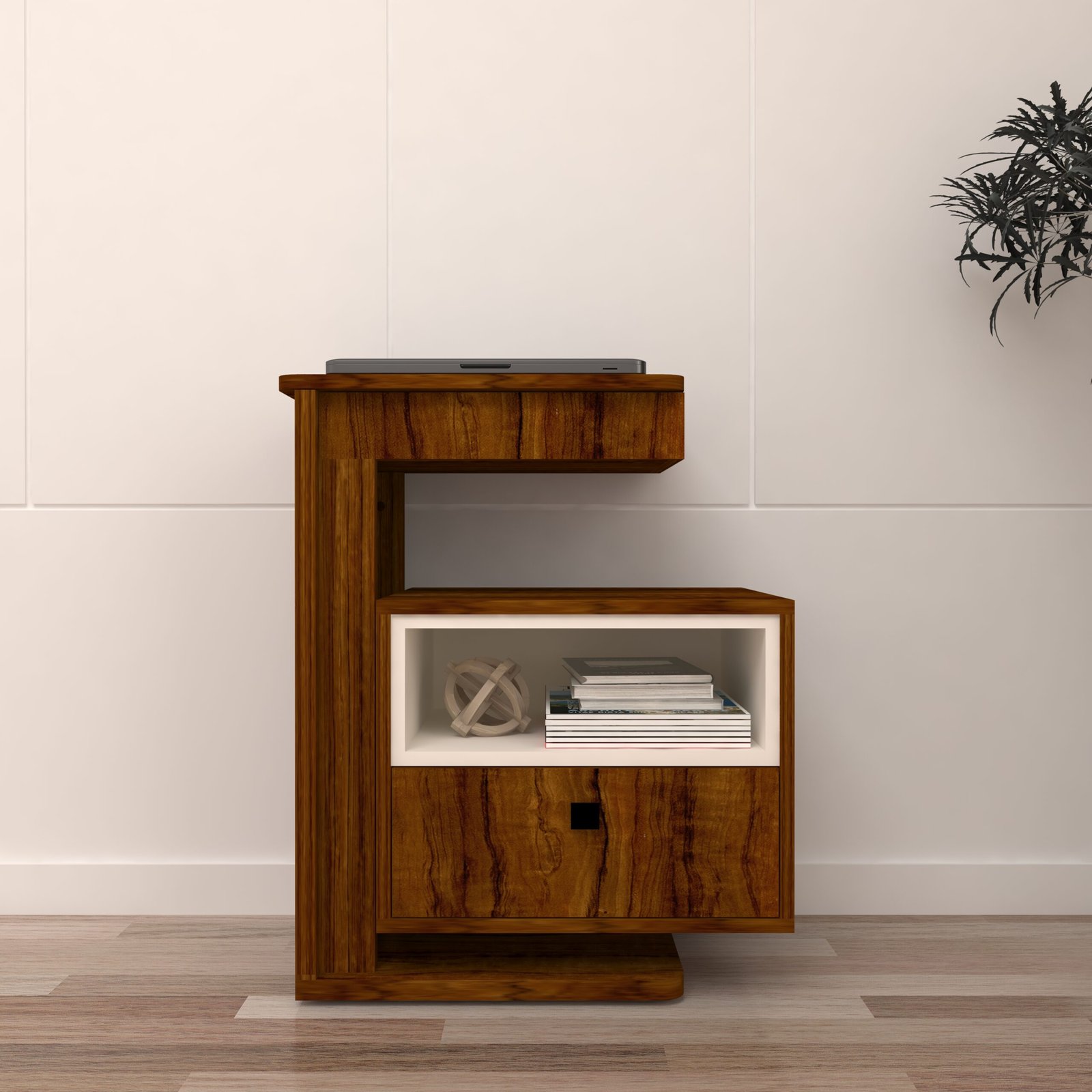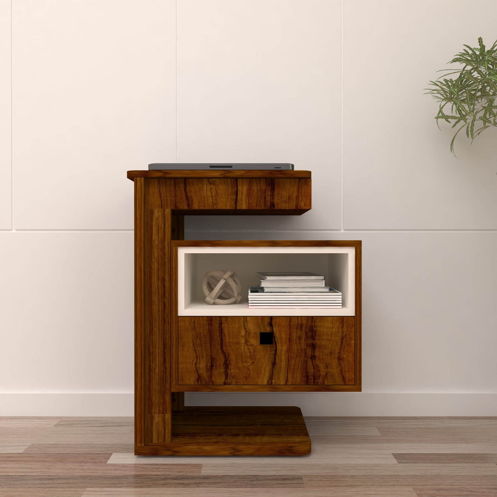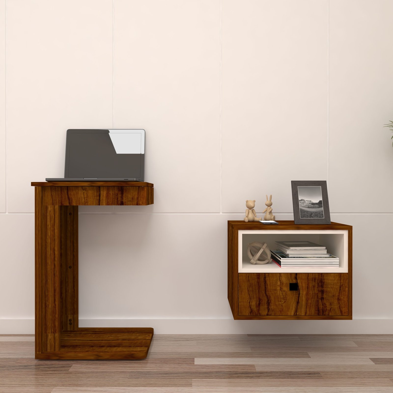 Upgrade your home with the modern Cavo Set Side table featuring a premium C-shaped laptop table and a stylish wall-mounted side table. Designed in an elegant dual tone of Brazilian walnut and frosty white finish, this versatile set enhances both functionality and aesthetics.