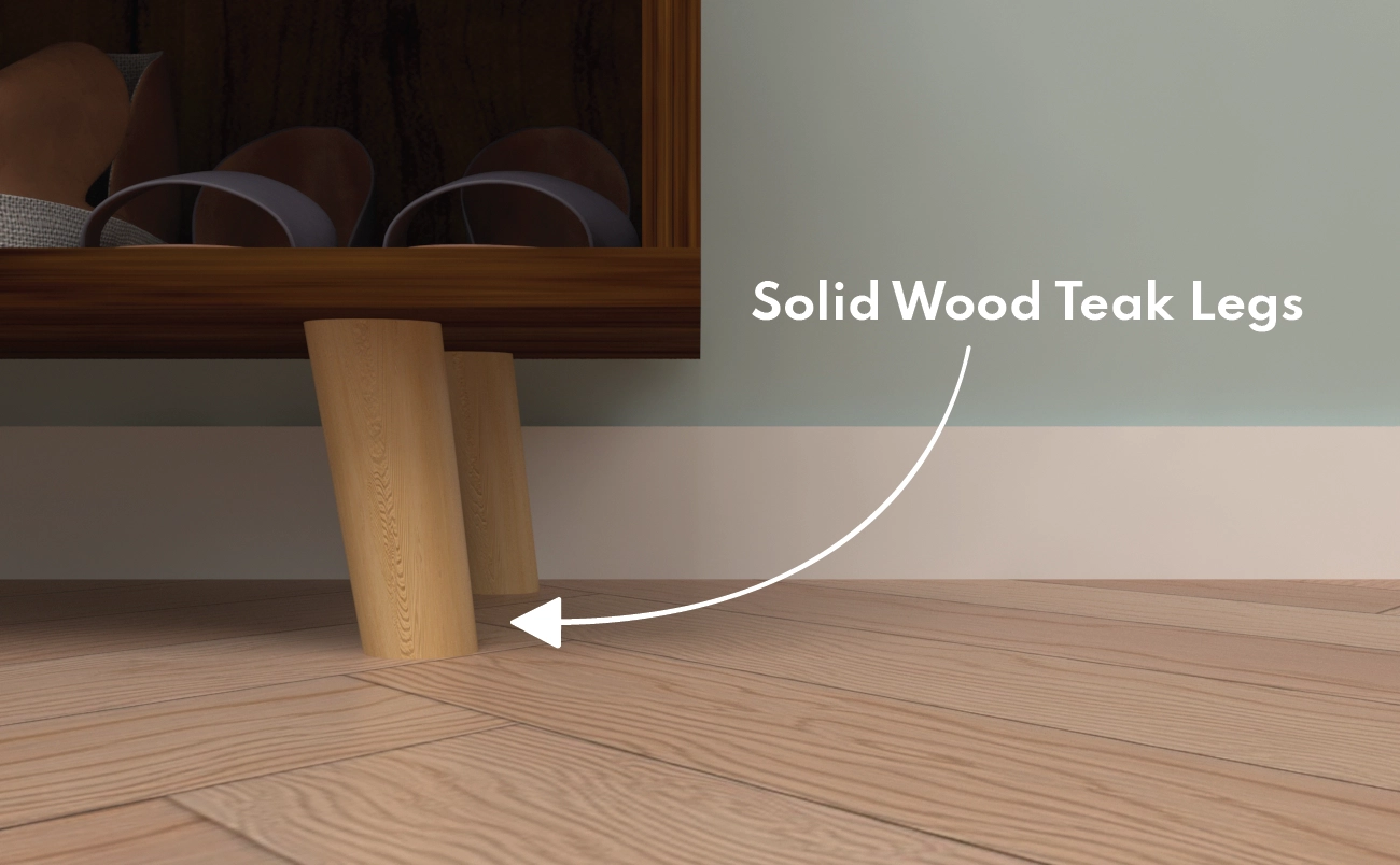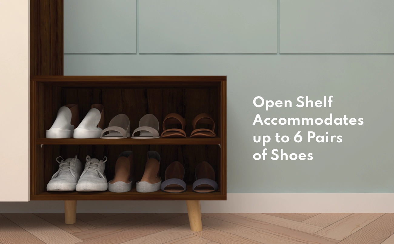 Crafted from premium engineered wood in a warm dual-tone of Brazilian Walnut and Frosty White, the shoe cabinet is both durable and elegant. The shoe stand is supported by sturdy solid teak wood legs, elevating its look while adding strength. With 50,000 cycle-tested hinges and premium knobs, the shutter ensures smooth accessibility and lasting performance—making Tifoh shoe rack a perfect addition to any modern home.