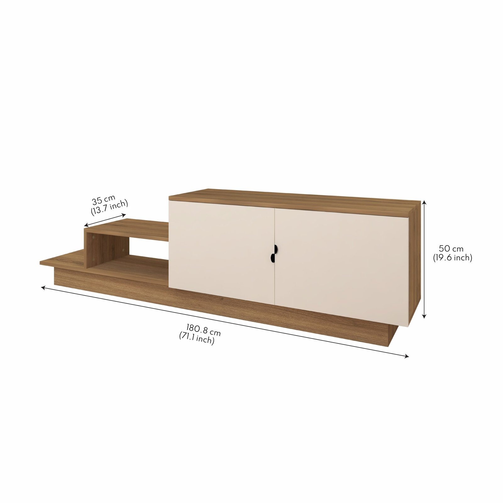 Measuring 180.8 cm (71 in) in width, 35 cm (13.7 in) in depth, and 50 cm (19.6 in) in height, this TV unit is suitable for large-screen televisions up to 75 inches, while its low profile structure adds a minimalist charm.