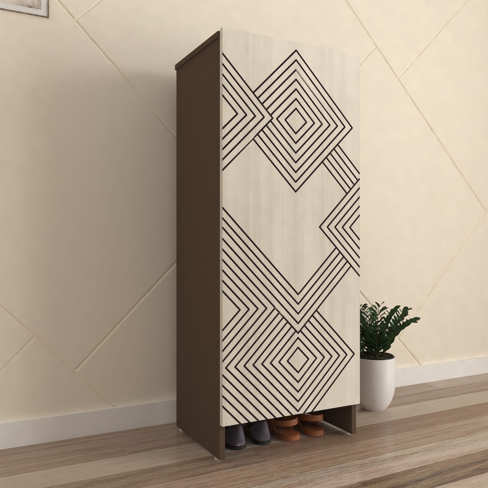 Upgrade your home organization with the Walaro Shoe Rack, designed in a modern Acacia Light and Mocha Brown finish to complement any interior space. Featuring a sleek groove pattern front panel, this shoe rack adds a stylish and contemporary touch to your entryway, hallway, or bedroom.