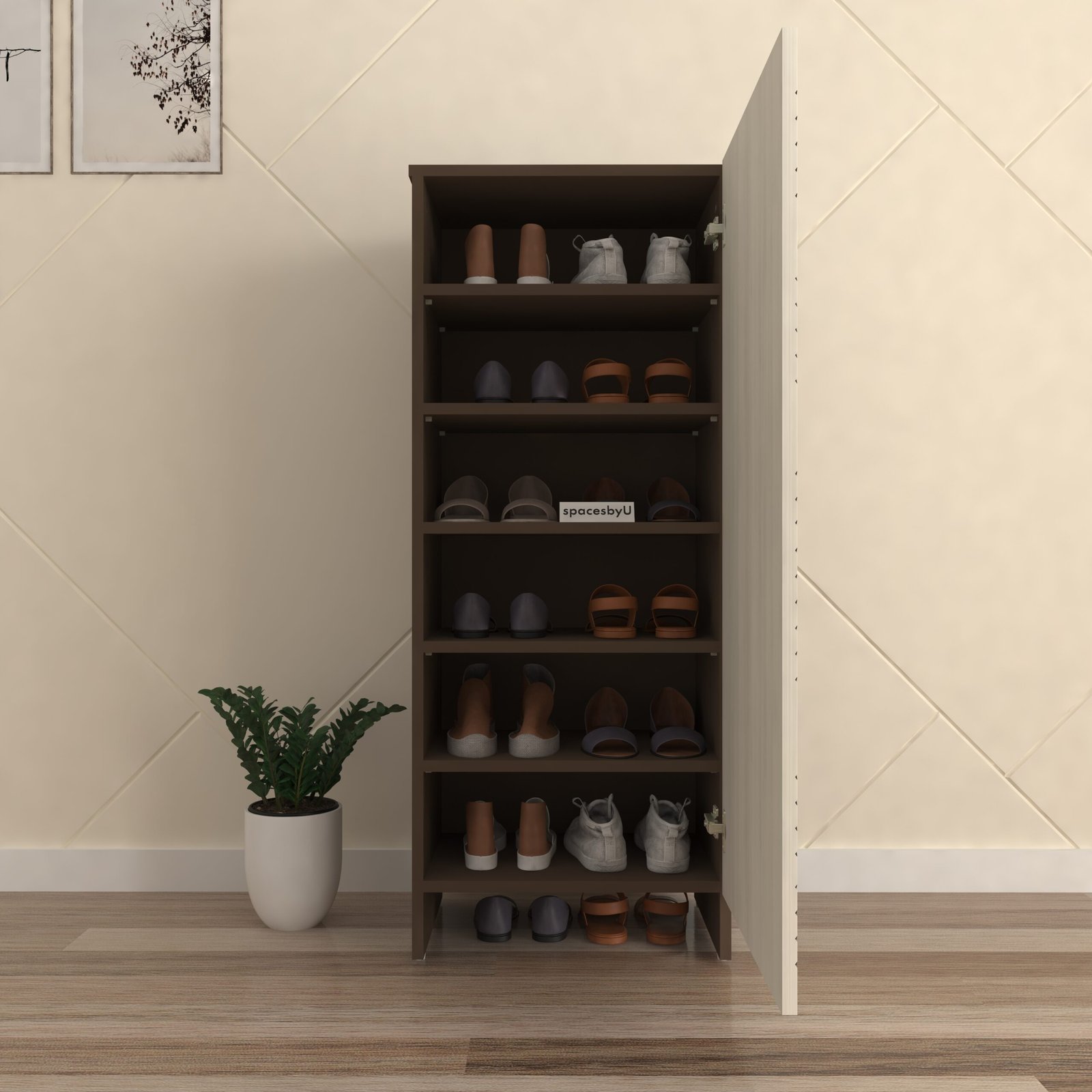 With a capacity to store up to 14 pairs of shoes, it offers a practical combination of closed storage compartments to keep your footwear dust-free and a convenient open area for easy access to daily-use footwear like slippers or sandals.
