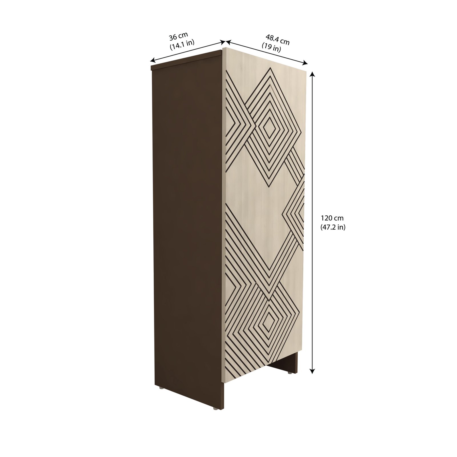 Built with a space-efficient vertical structure, this unit helps maximize storage while minimizing floor usage. With overall dimensions of 119.4 cm (47 in) Height, 49.4 cm (19 in ) Width, 36 cm (14.1 in) Depth it is ideal for both compact and spacious homes.